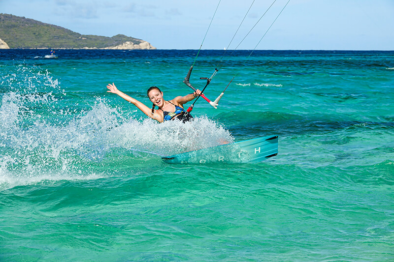 From the port of Grenada we set sail towards the Grenadines, a group of islands that are a true kiter’s paradise. The Action Cruise has been meticulously planned to make sure all the best spots are visited during the trip, but as we were a small crew, change from the original planning seemed to be seeping in from day one. About halfway to the Grenadines we spotted a sandspit on a tiny deserted island. We were supposed to have a full day of sailing but the wind lured us to the spot and we geared up for our first Caribbean session. I grew up on Aruba, an island not far from where we were, and I only moved back to the Netherlands about a year ago. Needless to say, it felt like coming home when I launched my kite and dove into the warm, blue water.