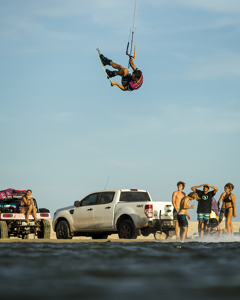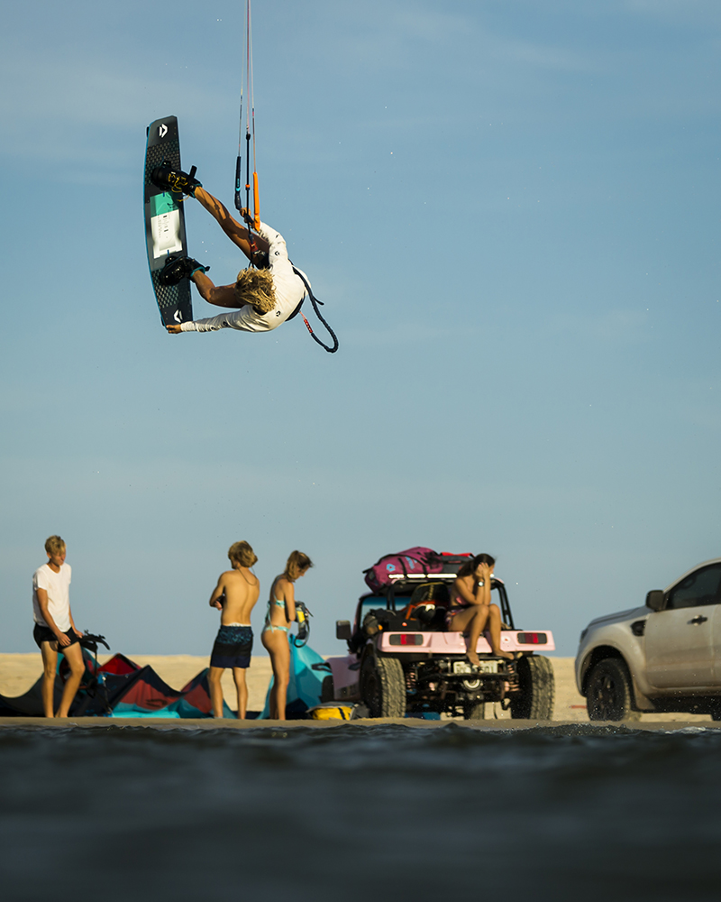Coming back from the shoot we would all sit behind one laptop checking the footage straight away. Roasting on photos where we grab wrong and having a good laugh! I asked Andre how he enjoys his sessions in Brazil. “I really love shooting kiteboarding, but the main reason I do it is because the crew is amazing. And the new generation is no different. I’m a huge fan of them all. The last couple of years have been special for me, because I was able to see them in competition mode, but also we have had some nice, chilled, no-pressure photo sessions. I like to shoot in a very particular way. It’s like a team sport. The riders need to work with me and understand what I’m looking for. Because of the flashes, the riders have a pretty narrow window where they can do the tricks. I had shot with Gianma before, so he was well aware of how it works. But I had to teach Pippa and Val how I like to work. They learned super fast, it was very productive and they didn’t land on my flashes which is always a plus! I’m looking forward to seeing what this epic group achieves in the future and where they take their riding to next. They all have unique styles and unique characters. Pippa is always pushing to go bigger and faster. Val is so smooth and easy. He makes kiting look like it needs no body strength at all. Gianma has a huge bag of tricks that just keeps on growing. He is super stylish and always brings this happy Italian vibe wherever he goes.”